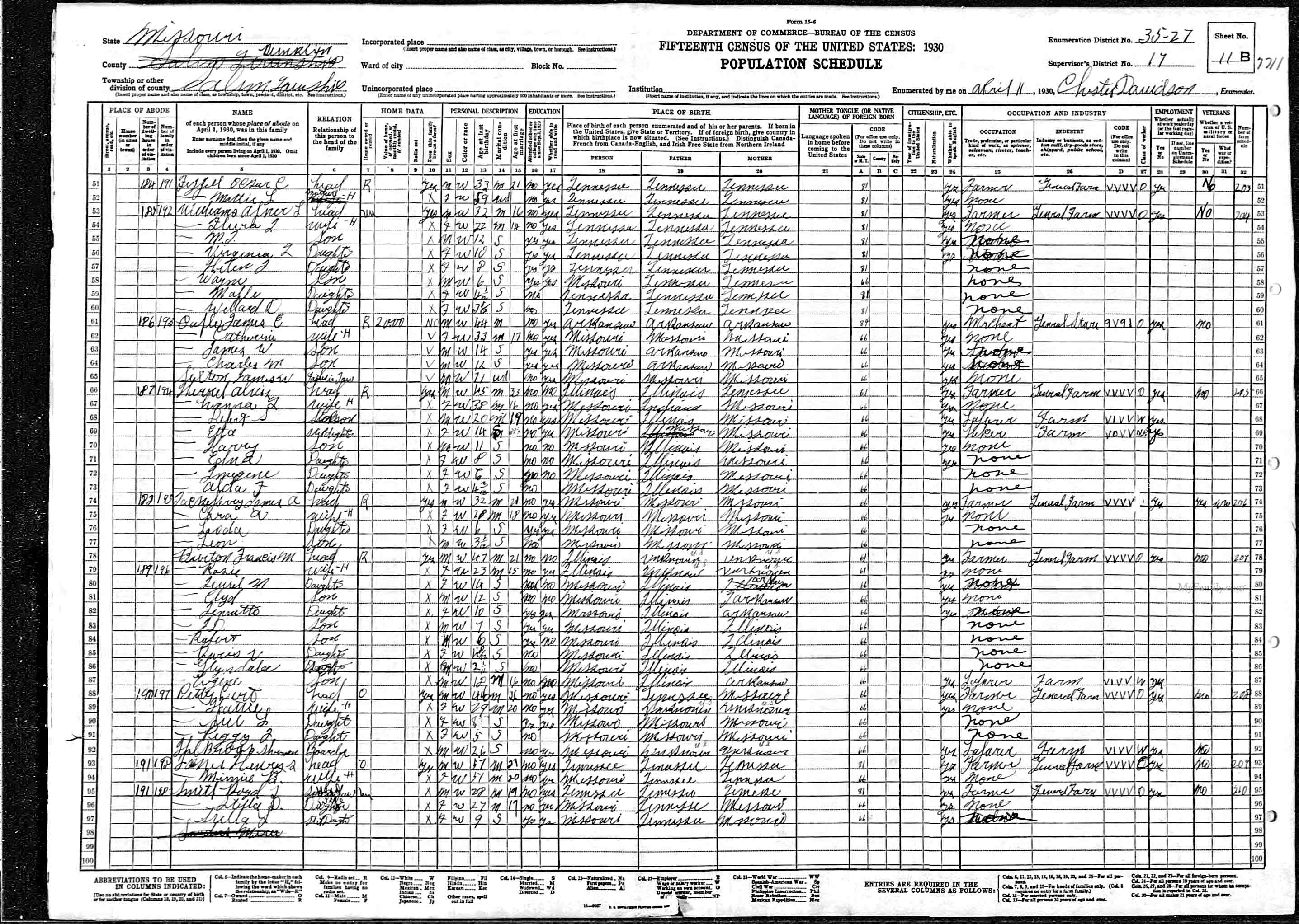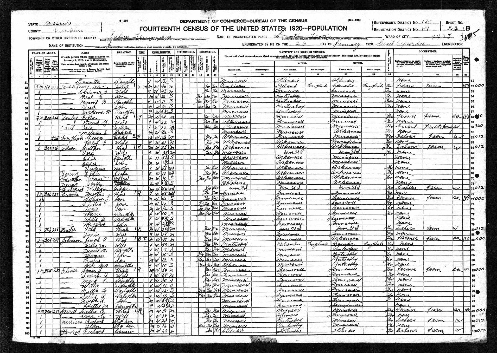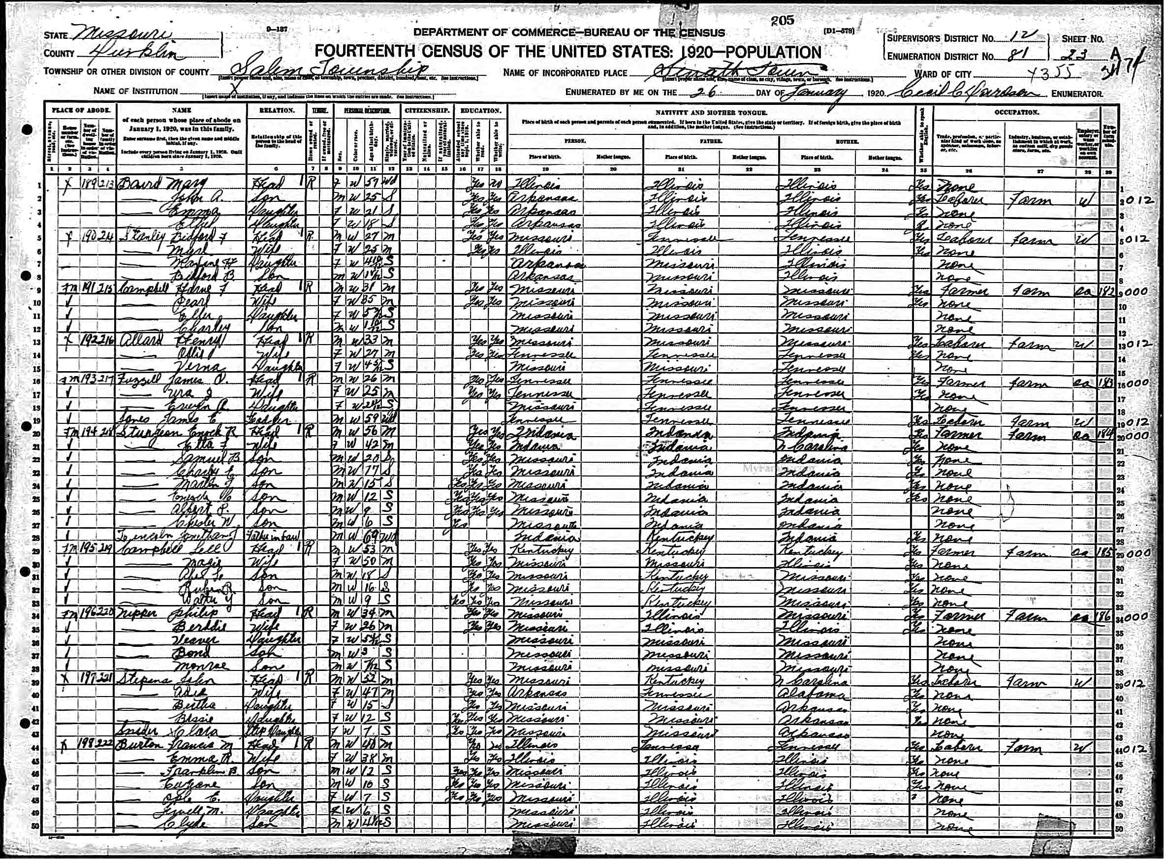 1920 2nd half of Francis Marion Burton Census